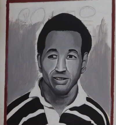 In one of the panels on the stadium entrance gate the artist have placed the image of AR Abass after whom the stadium is named. Abass was a Kimberley resident who played rugby in 1903 for the Arabian College rugby football club at this stadium.