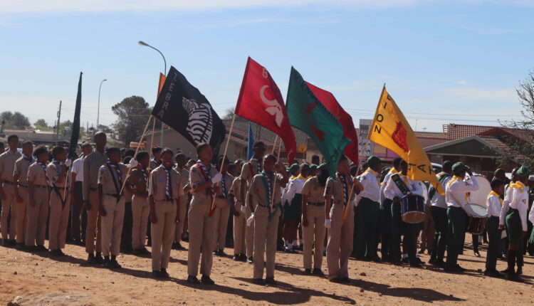 The flags were flying high, and synchronized drums could be heard from the Galeshewe circle as 120 Pathfinders and 75 scouts dressed in uniforms with badges indicating the candidate’s achievements. The parade started at the circle and proceeded to the Thomas Morebudi tennis courts in Nkgare Street, Galeshewe, for the rest of the celebration.