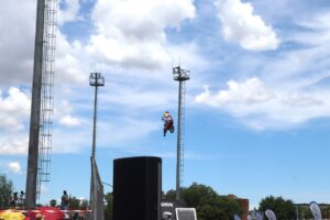 The motocross team from Johannesburg showcased their daring and high energy action stunts, performing backflips, superman, and no lander stunts for the entertainment of the crowd 75ft:23meters, from the take-off ramp to the landing.
